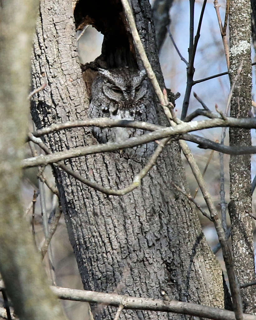I spoke with a few fellow birders and they directed me to a tree with my buddy the Eastern Screech Owl taking a little nap.